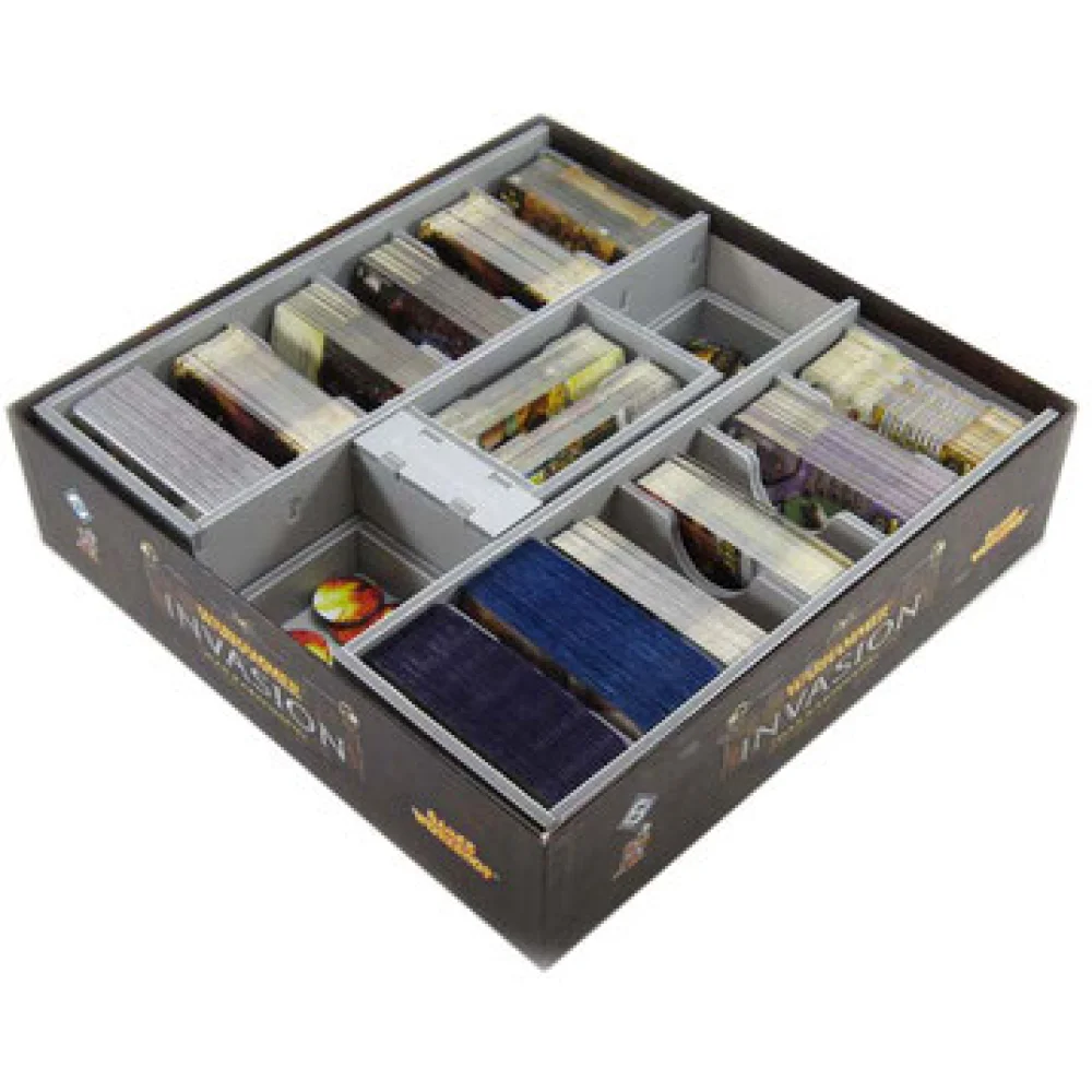 This insert is designed to be compatible with Living Card Game® style games, such as Warhammer Invasion®, Ashes Rise of the Phoenixborn®, Android Netrunner®, Star Wars®, The Lord of the Rings: The Card Game (1st edition)® and many others. The design provides both efficient storage and improved game play. The token trays can be utilised during the game, and all trays greatly aid set-up and clear-away times.